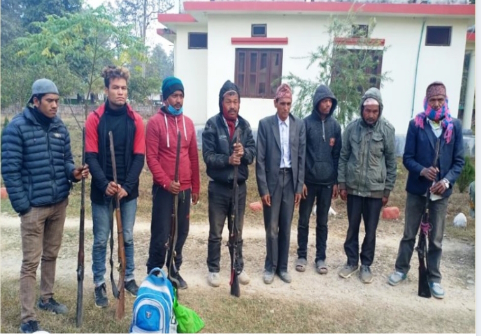त्यस्तै पक्राउ पर्नेहरुमा सल्यानका भीमबहादुर खनाल,रत्न थापा मगर,कृष्णबहादुर थापा,सोमबहादुर खत्री,टेकबहादुर कुँवर,कुमार थापा,धनबहादुर थापा,देवप्रसाद थापा र तिलक डाँगी रहेका छन् । उनीहरूले गोठ तथा घर नजिकको झाडीमा लुकाएर राखेको ६ नाल भरुवा बन्दुक बरामद भएको र कारबाहीका लागि निकुञ्ज कार्यालयमा बुझाइएको नेपाली सेनाले जानकारी दिएको हो ।