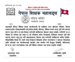त्यस्तै शीघ्र शिक्षा ऐन जारी गराइ विद्यालय शिक्षाको उचित व्यवस्थापन र गुणस्तर विकासका लागि गरिएको यस आन्दोलनलाई सहयोग तथा समर्थन गरिदिन सबैसँग विज्ञप्तिमा आह्वान गरिएको छ । सरकारले भने शिक्षक आन्दोलनका बाबजुद निजामती कर्मचारीलाई परिचालन गरेर भएपनि कक्षा १२ को परीक्षा सञ्चालन गर्ने निर्णय गरेको छ।
