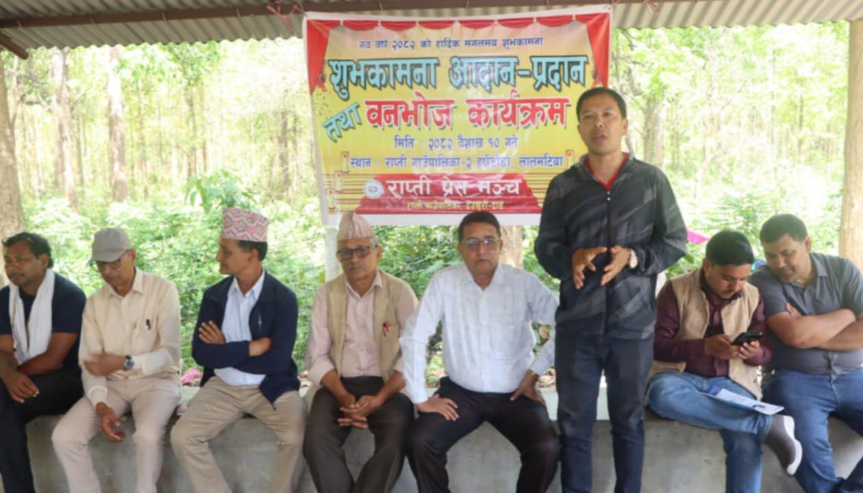 बुधबार दाङको राप्ती गाउँपालिका- २ हर्षेडाँडा पार्क लालमटियामा राप्ती प्रेस मञ्चले आयोजना गरेको नयाँ वर्ष २०८२ को अवसरमा आयोजित शुभकामना आदान–प्रदान तथा वनभोज कार्यक्रममा प्रमुख अतिथिका रूपमा बोल्दै उनले विगतमा पत्रकार सदस्यता वितरणमा विभेद भएको सन्दर्भ सुनाउँदै अहिलेको नेतृत्वले निष्पक्ष ढंगले क्रियाशील पत्रकारलाई प्राथमिकतामा राख्ने बताए । उनले भने,’अब पत्रकार सदस्यता विचार,आस्था वा व्यक्तिगत रिसिभिका आधारमा होइन, क्रियाशीलताका आधारमा वितरण गर्छौ।’