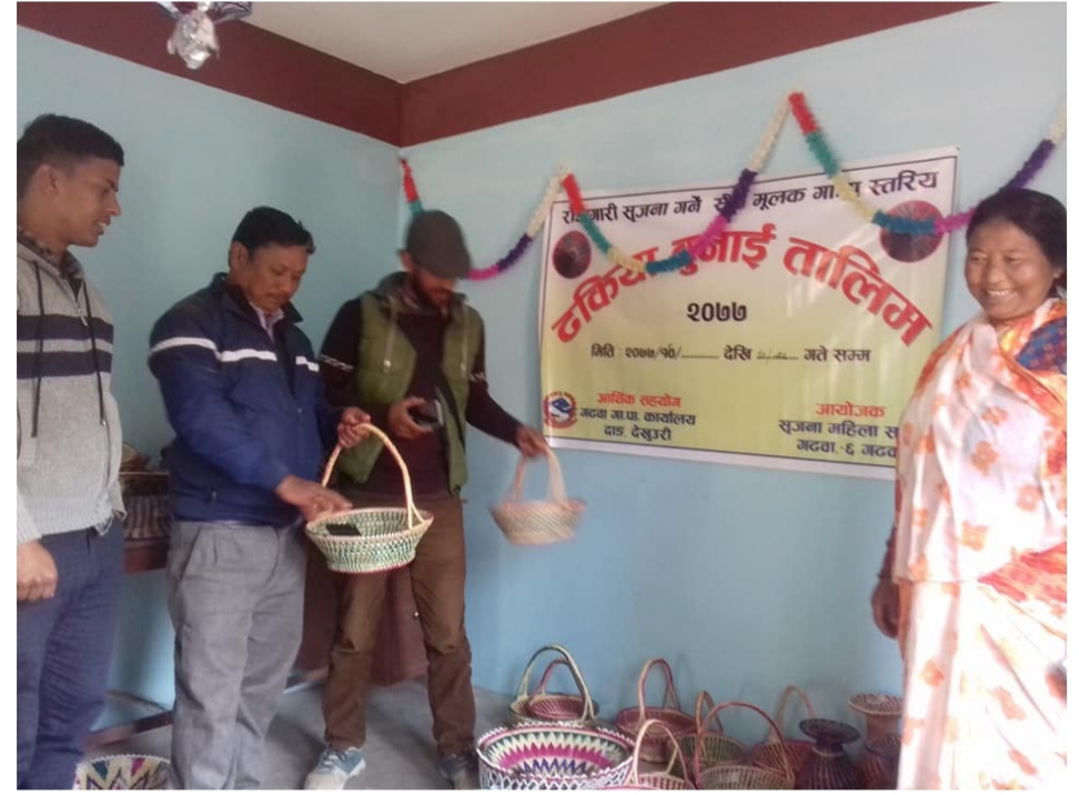 यसैगरी गाउँपालिकाको सात लाख बजेटबाट एक महिना सम्म २ जना प्रशिक्षक राखी ३३ जना महिलाहरुलाई ढकिया बुनाई तालिम सिकाएको सृजना महिला समुहका अध्यक्ष मानु कुमालले बताए । गत २०७५ सालमा २ लाख,०७६ मा ५ लाख र यो बर्ष संघीय सरकारद्धारा हस्तान्तरित सिपमुलम तालिम अन्तर्गत ७ लाख बजेट ढकिया बुनाईको सिप प्रबर्धनमा गाउँपालिकाले लगानी गरेको र हालसम्म ८८ जना महिलाहरुले ढकिया बुनाई तालिम लिएर दक्ष बनिसकेको गाउँपालिकाका उपाध्यक्ष शान्ती चौधरीले बताउनु भयो । त्यस्तै गढवाका थारु र गैह्र थारु महिलाहरु समेत ढकिया बुनाइको आकर्षण रोज्न थालेका छन् उहाँले भन्नु भयो । तिन बर्षको तालिमबाट ३ जना दक्ष प्रशिक्षकहरु समेत तयार भएको गाउँपालिकाले जनाएको छ ।
