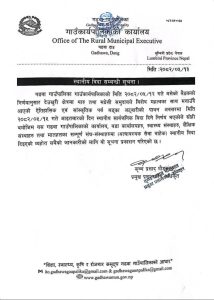 लमही नगरपालिकाका प्रमुख जोगराज चौधरी, राप्ती गाउँपालिकाका अध्यक्ष प्रकाश बिष्ट,गढवा गाउँपालिकाका प्रमुख प्रशासकीय अधिकृत कृष्ण प्रसाद पौड्याल र राजपुर गाउँपालिकाका प्रशासकीय अधिकृत रेमन्त बहादुर डाँगीद्वारा छुट्टाछुट्टै सुचना जारी गरि सार्बजनिक बिदा दिईएको छ । साथै, संस्कृति र परम्पराको संरक्षणका नाममा देखिन सक्ने विकृति वा अपसंस्कृति गतिविधिप्रति सचेत रहन पनि सूचना मार्फत सबैलाई आग्रह गरिएको छ ।