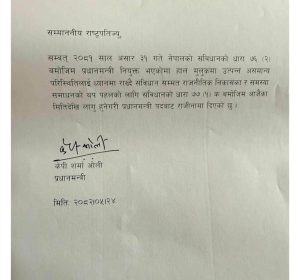 त्यस्तै उता राष्ट्रपति रामचन्द्र पौडेलले प्रधानमन्त्री केपी शर्मा ओलीको राजिनामा स्वीकृत गरेका छन्। राष्ट्रपतिका प्रेस सल्लाहकार किरण पोखरेलले राजीनामा स्वीकृत भएको बताए ।