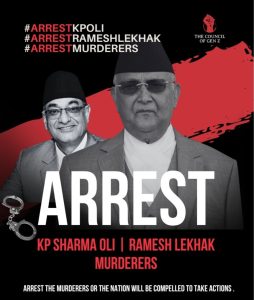 काठमाडौं । जेनजी आन्दोलनबाट सत्ता गुमाएका निवर्तमान प्रधानमन्त्री तथा एमाले अध्यक्ष केपी शर्मा ओली र तत्कालीन गृहमन्त्री तथा काङ्ग्रेस नेता रमेश लेखकलाई पक्राउ गर्न माग गर्दै सामाजिक सञ्जालमा अभियान चलाइएको छ ।