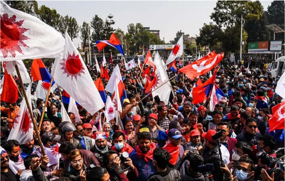 काठमाडौं । संसद पुनःस्थापना भएको खुसियालीमा नेकपा प्रचण्ड-माधव समूहले काठमाडौंमा विजय जुलुस निकालेको छ ।