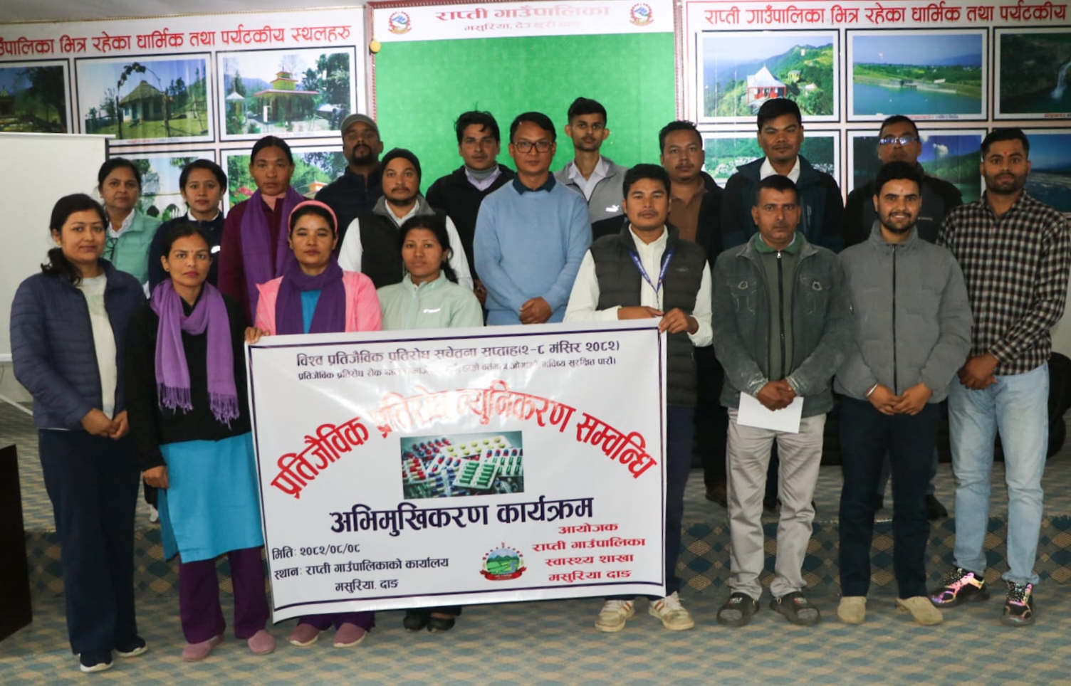 दाङ । देउखुरीको राप्ती गाउँपालिकामा प्रतिजैविक (एण्टिबायोटिक) प्रतिरोध न्यूनीकरणसम्बन्धी अभिमुखीकरण कार्यक्रम सोमबार मसुरियामा सम्पन्न भएको छ।