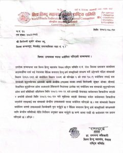 कञ्चनपुर । कञ्चनपुरका हिन्दुवादी अगुवा युवा सिरोमणी कुमार ओझा (सुर्य) विश्वहिन्दु महासंघ नेपाल राष्ट्रिय समितिको केन्द्रीय उपाध्यक्षमा मनोनित भएका छन् ।