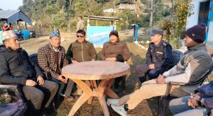 त्यसपछि उनले ७६ वर्षीय खुमबहादुर खत्री लगायत स्थानीय बुद्धिजीवीसंग भेटघाट गरेर नाकाको बारेमा बुझेका थिए । उनले हुलाक घर र भनसार घरको बारेमा समेत बुझेका थिए । यसैगरी उनले बालकल्याण माध्यमिक विद्यालय,एकीकृत सेवा इकाईको समेत अबलोकन गरेका थिए ।