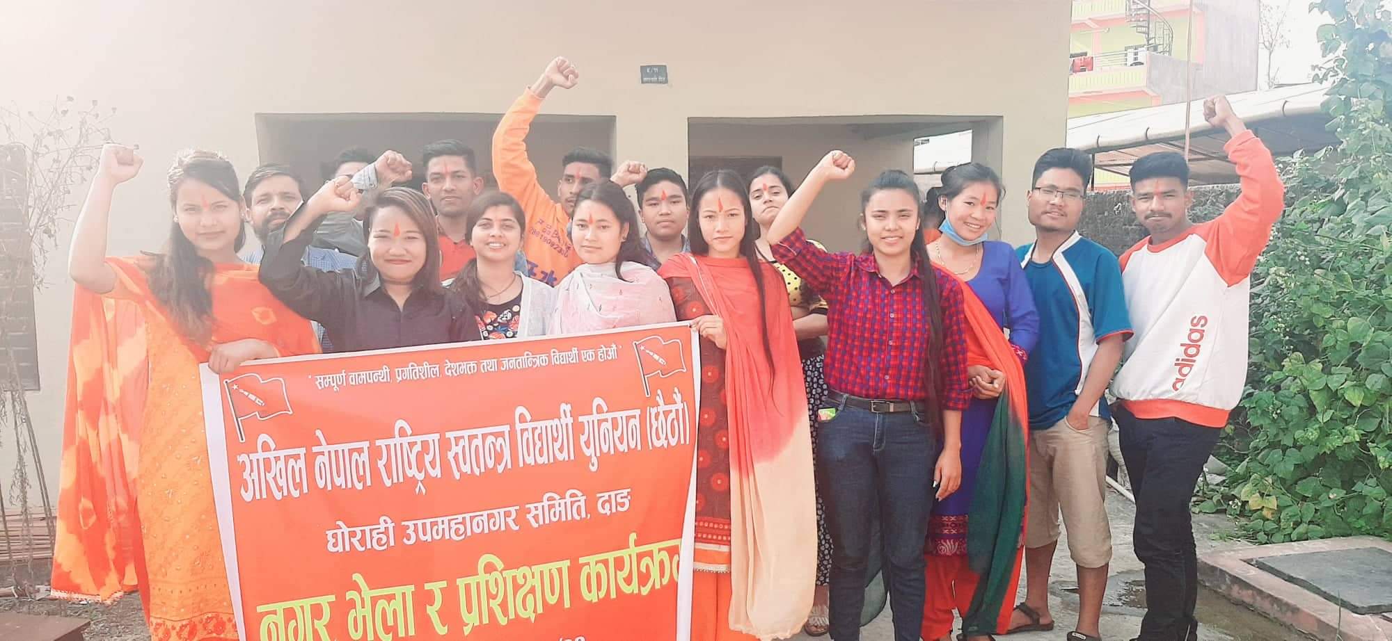 दाङ । अखिल नेपाल राष्ट्रिय स्वतन्त्र विद्यार्थी युनियन (छैंठौ) को घोराही राजमो कार्यालयमा घोराही नगर स्तरीय भेला तथा प्रशिक्षण कार्यक्रम सम्पन्न भएको छ।