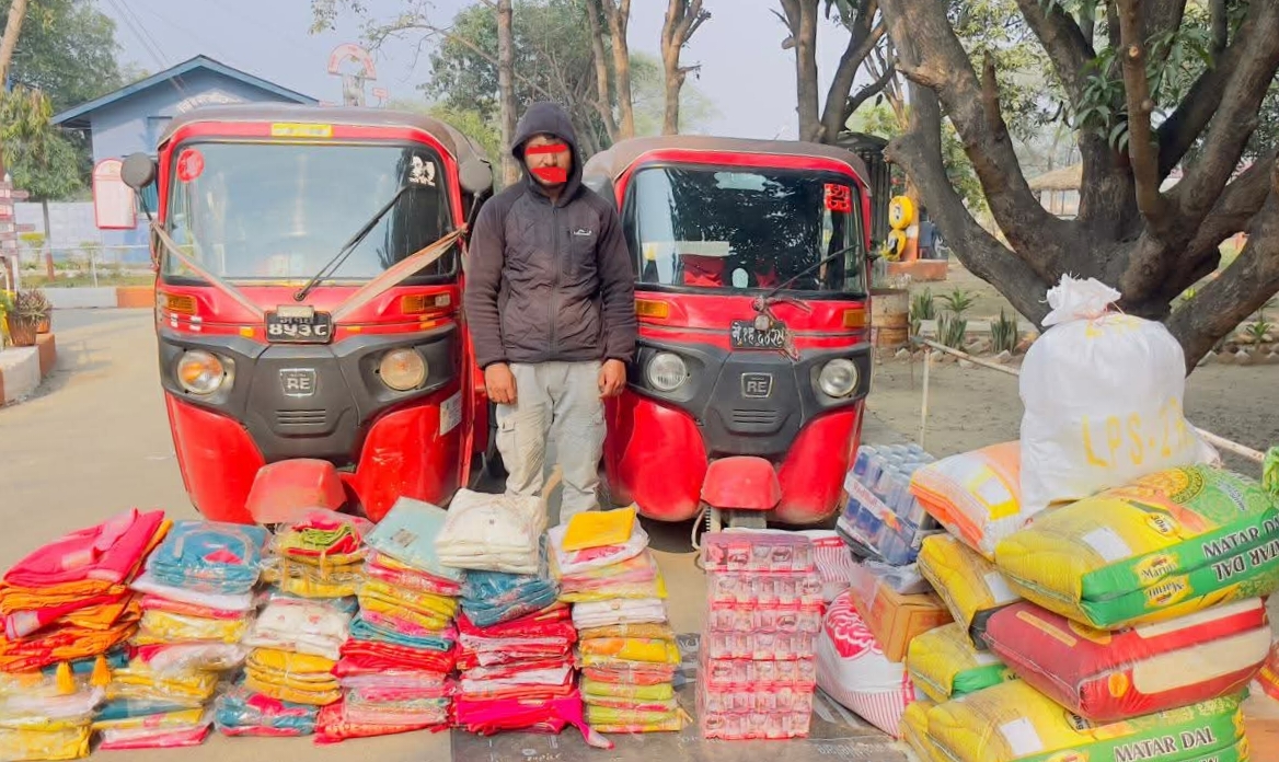 त्यस्तै अटो रिक्सा सहित बरामद सामानको भन्सार दाखिला मूल्य ५ लाख ५५ हजार २९५ रुपैयाँ कायम गरिएको सशस्त्र प्रहरी गण हेक्वाटर ३० गण गणले जानकारी दिएको छ । साथै सशस्त्र प्रहरी बल नेपाल सीमा सुरक्षा गुल्म जमुनाहाबाट खटिएको टोलीले नेपालगन्ज उपमहानगरपालिका १६ जयसपुरस्थित सीमा क्षेत्रबाट अवैध रूपमा नेपाल भित्र्याइँदै गरेको अन्दाजी १० लाख रुपैयाँ बराबरको मोटर पाट्र्स र लत्ताकपडा बरामद गरेको हो। सोही प्रकरणमा कालिकोट रास्कोट नगरपालिका ८ निवासी २६ वर्षीय तपेन्द्र दर्जीलाई पक्राउ गरिएको छ ।