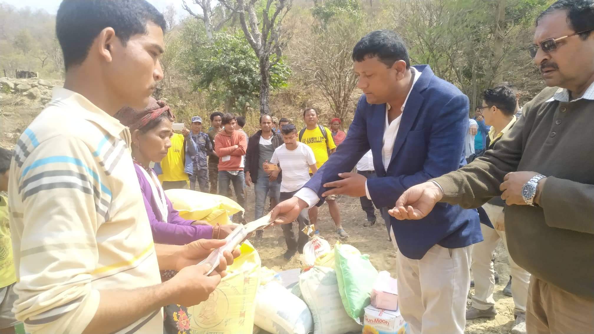 सभापती शरद बुढाथोकि, महासमिति सदस्य जानकिलाल बस्नेत, सदस्य खिमसिंङ राणा, वडा सभापति रामबकस चौधरी, ट्रेड युनियन राजपुर सभापति पाटेश्वर यादब, तरुणदल राजपुर सचिब रेख बहादुर गिरी, ईन्द्र वली, प्रकाश बस्नेत, रामधार यादब, मान बहादुर चलाउने, देब बहादुर खड्का, गिरिराज सेन ठकुरी लगायत पत्रकारको टिम नाकामै पुगेर राहात हस्तान्तरण गरेको हो ।