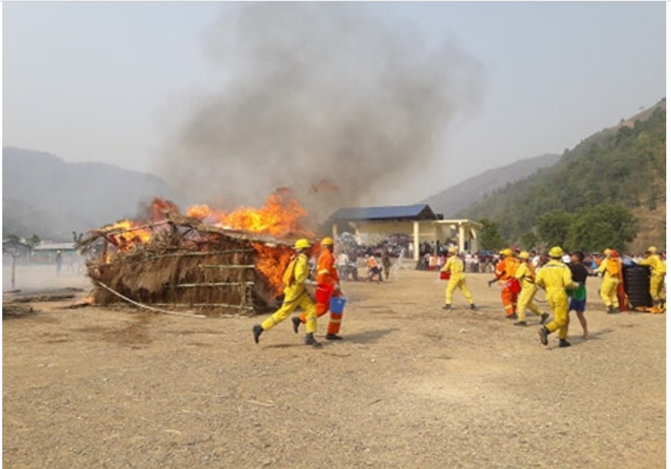 घटना स्थलमा पुगेर सबै बिद्यार्थी तथा रेडक्रसकर्मी र प्रहरीले स्थानीय साधन स्रोतको माध्यमबाट आगो नियन्त्रणमा लिए । घाइते बालबालिका, जेष्ठ नागरिक अपांगता भएका नागरिक र महिलाहरुलाई टोलीले उद्धार गर्न थाल्यो । घाइतेहरुलाई अस्पतालमा पुर्याउन एम्बुलेन्स बोलाइयो भने स्थानीय स्तरमा रेडक्रसकर्मी र प्रहरीहरुबाट अस्थायी आबास राहत बितरण र प्राथमिक उपचार लगायतका कामहरु गर्न थालियो । तर यो घटना भने वास्तविक होइन् ।