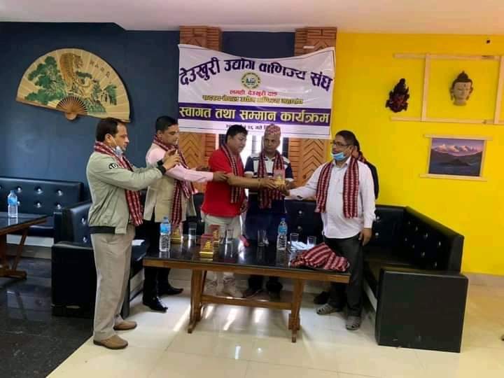 दाङ । देउखुरी उधाेग बाणिज्य संघकाे आयाेजनामा देउखुरीका दुईवटा उघाेग बाणिज्य संघका नबनिर्बाचित पदाघिकारिहरुलाई स्वागत तथा सम्मान कार्यक्रम बिहीबार लमहीमा संम्पन्न भएको छ ।