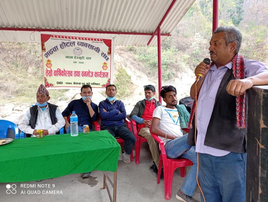 यसैगरी होटल ब्यवसाय आन्तरिक र बाह्य पर्यटन प्रबर्धन गर्ने माध्यम भएकोले ग्राहकको माग बमोजिम परिष्कृत गर्दै लैजानुपर्ने उनले बताए । कार्यक्रममा गढवा गाउँपालिकाका प्रबक्ता एवं वडा नं. १ का वडा अध्यक्ष बाबुराम अधिकारी, गढवा उद्योग बाणिज्य संघका अध्यक्ष खिमबहादुर बुढामगर, निवर्तमान अध्यक्ष रविलाल आचार्य, संस्थापक अध्यक्ष युवराज पाेख्रेल र देउखुरी सामुदायिक पुस्तकालयका अध्यक्ष गिरिराज भट्ट लगायतले बार्षिकोत्सव सफलताको शुभकामना दिएका थिए ।