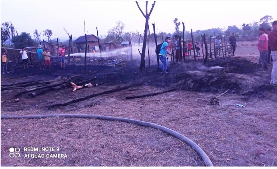 दाङ । देउखुरीकाे गढवा गाउँपालिका वडा नम्बर ६ मनिकापुरमा आगलागी हुँदा २ घर र २ गोठ जलेर खरानी भएका छन् ।
