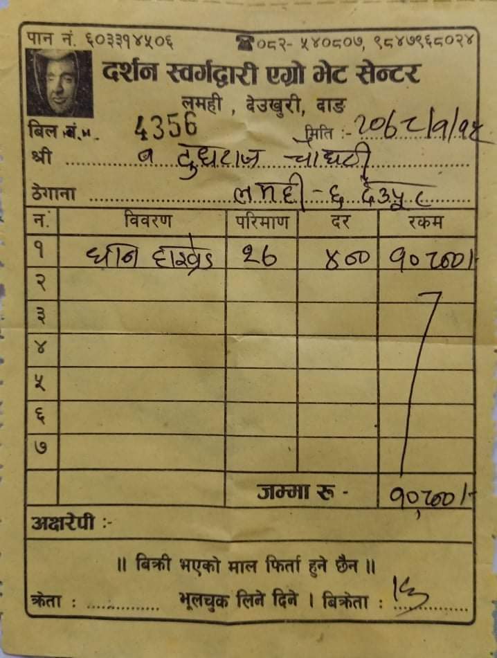 यस्तै धानको ब्याड राख्ने चटारोमा रहेका देउखुरीका कृषक हाइब्रेड भन्दै नक्कली धानको बीउ बजारमा बिक्री हुन थालेपछि किसान अन्योलमा परेका हुन् ।लमही नगरपालिका वडानम्बर ६ निवासी दुध राज चौधरीले धानको बीउ किन्ने भनी बैशाख १५ गते लमही नगरपालिका वडा नम्बर ५ लमही बजारमा अबस्थित दर्शन एग्रोभेटमा पुगे ।