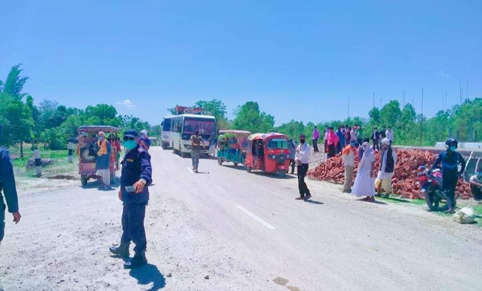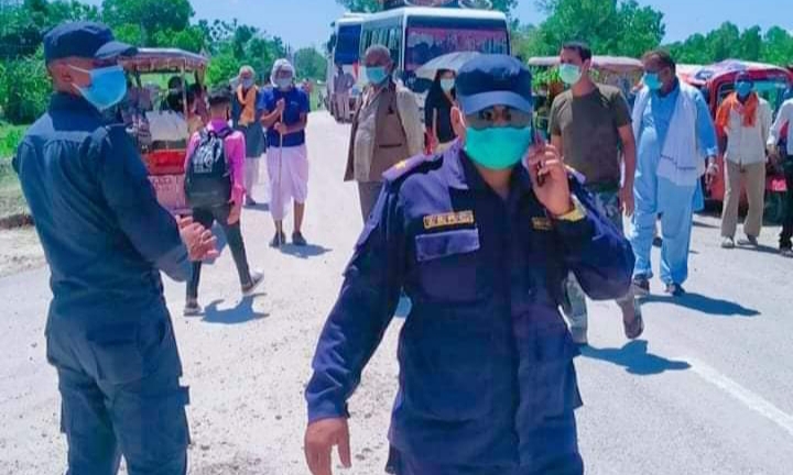 बाँके । देशभर कोरोनाको नयाँ भेरिएन्ट सहितको सक्रमण तिव्र रुपमा फैलिएको र यसको संक्रमणको रोकथाम तथा नियन्त्रण गर्न जिल्ला प्रहरी कार्यालय बाँकेको निर्देशन अनुसार अस्थायी प्रहरी पोस्ट फत्तेपुरका इन्चार्ज प्रहरी साहेक निरीक्षक जंग बहादुर एमसीको कमान्डमा खटिएको प्रहरी टोलीले फत्तेपुर एरियाको विभिन्न सडकमा निषेधाज्ञाको अवज्ञा गर्ने सवारीसाधनहरु मोटरसाइकल स्कुटी २७ वटा चार पाङ्ग्रे सवारी साधन १७ वटा अटो रिक्सा १३ वटा साइकल १४ वटा लगाएतलाई शनिबार केही समय होल्ड गरी सम्झाई बुझाई गरी छाडिएको र (मास्क) अनिवार्य लगाउन अनुरोध गरेर छोरेको अस्थायी प्रहरी पोस्ट फत्तेपुरका इन्चार्ज प्रहरी साहेक निरीक्षक एमसीले जानकारी दिएका छन ।