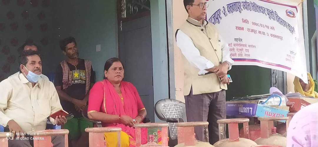 त्यस्तै राजपुर गाउपालिकालाई धुवा मुक्त अभियानका लागि गत बर्ष पनि वडा नम्बर ५ का सम्पुर्ण घरधुरीलाई ग्यास सहित चुल्हो बितरण गरिएको थियो ।
