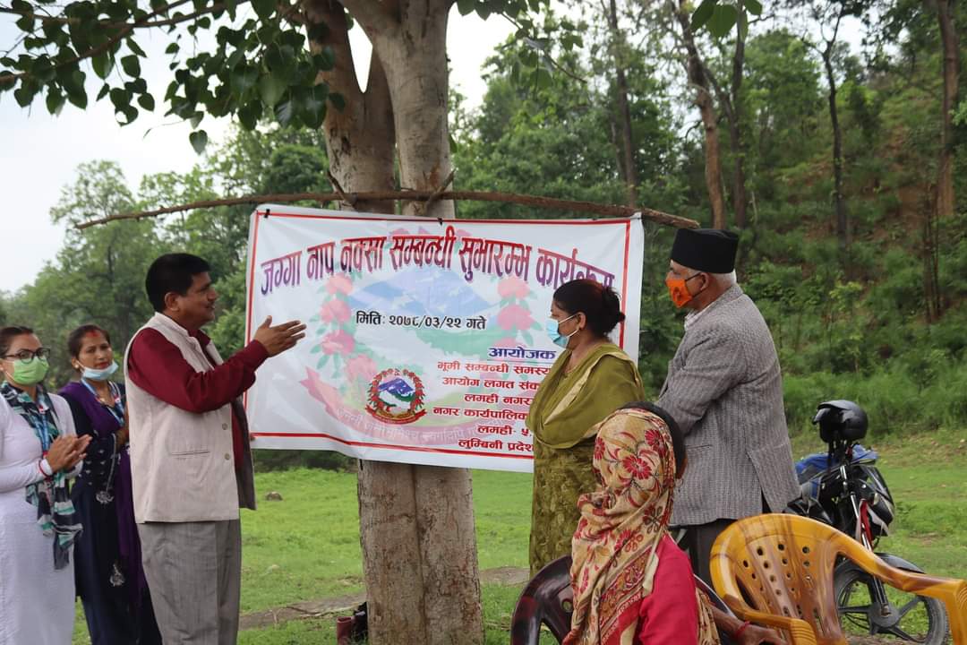 उप्रमुख देवका बेल्वासेले भूमिहिन सुकुम्बासीको समस्या समाधान गर्न सरकारले योजनाबद्ध रुपमा काम गरिरहेको जानकारी दिनुभयो । नगर प्रमुख कुलबहादुर केसीको अध्यक्षता तथा लुम्बिनी प्रदेश सभा सदस्य रेवतीरमण शर्माको प्रमुख आतिथ्यतामा जग्गाको नाप नक्साको काम सुभारम्भ भएको हो ।