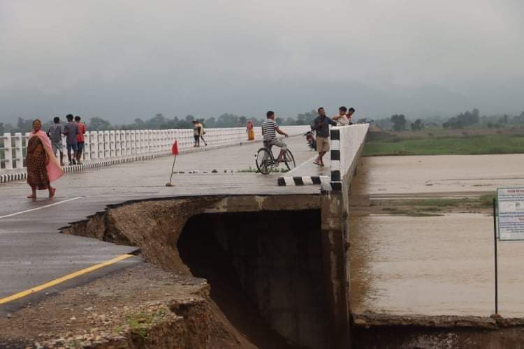 त्यस्तै किनारा जोगाउन गरिएको तट्बन्धलाई समेत भत्काउँदै सडक समेत भाँसिएको छ । पुलको दक्षिणी भेगको पुर्ब साईड पट्टी २५ मिटर लम्बाई र साढे ७ मिटर चौडा सडक भाँसिएको छ । अबिरल वर्षा सँगै राप्तीको बहाब बढेर पुलको दझिणी भेगबाट राप्ती बग्ने खतरा पनि देखिएको छ ।