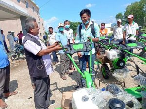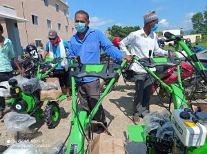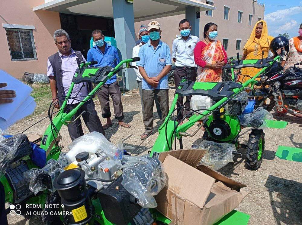 दाङ । देउखुरीको गढवा गाउँपालिका वडा नम्बर ६ का भरत कुमार पन्तले गाउँपालिकामा ३५ हजार ५ सय जम्मा गरेपछि ७० हजारको मिनी पावर ट्रिलर पाएको बताउनुभयो । मनिकापुर बहुउद्देश्यिय कृषि समूहका सचिव सुर्यबहादुर बुढा पनि गाउँपालिकाले पचास प्रतिशत अनुदानमा वितरण गर्न थालेको मिनीपावर टेलर चलाउदै घर जानु भयो ।