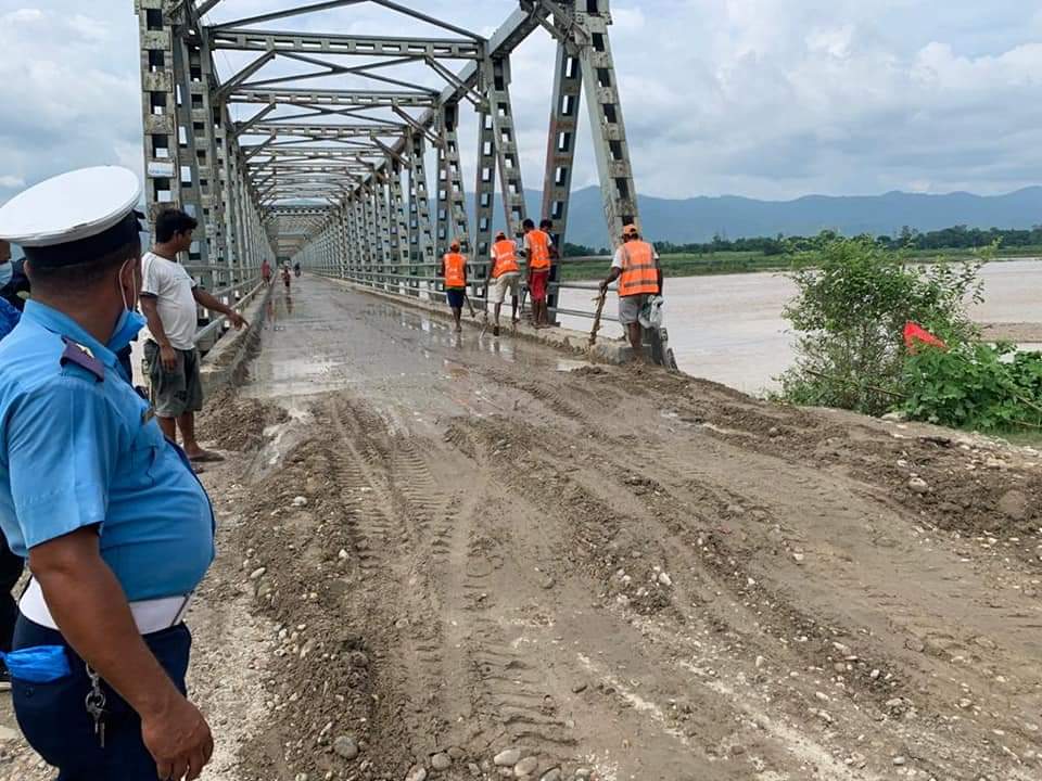 दाङका सहायक प्रमुख जिल्ला अधिकारी चिरञ्जिबि राना, सडक बिभाग दाङका सब इञ्जिनियर महेश विश्वकर्मा, सशस्त्र प्रहरी बल नेपाल नं।४१ रिजर्भ गण अर्जुन खोलाका प्रमुख यादव विश्वकर्मा संयुक्तको टोलिल सोही पुलको स्थलगत निरिक्षण एवम् अवलोकन गरेको छ । लगातार वर्षातका कारण पुलको दक्षिण तर्फको एप्रोच साइडमा बाहिरबाट पानी छिरेर भासिएको सब इञ्जिनियर विश्वकर्माले जानकारी दिए । उनका अनुसार आवश्यक सामाग्री लिएर तत्कालै भासिएको ठाउँ मर्मत गर्ने कार्य भइरहेको छ ।