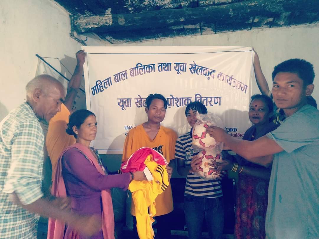 सो वडाका अध्यक्ष श्याम बहादुर रोका,वडा सदस्यहरु दिलमती ओली,सुरेन्द्र रोका,सन्ध्या नेपाली,रामबिलासु चौधरी वडा सचिव लक्ष्मी चौधरीको उपस्थितिमा क्लबलाई ड्रेस,भलिबल नेट र फुटबल प्रदान गरिएको छ भने विद्यालयलाई खेलकुदका सामग्रीहरु हस्तान्तरण गरिएको छ ।