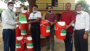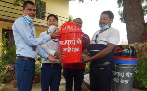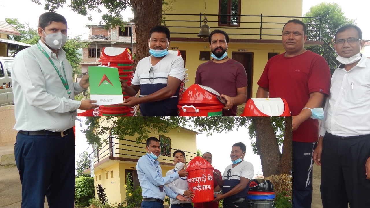 संस्थाका अध्यक्ष दण्डीराम चौधरी,उपाध्यक्ष लिला शाह,सचिव सनम पौडेल कार्यालयका प्रमुख भगवती प्रसाद चौधरीलाई बैंकका प्रमुख द्वोय सुधीर भण्डारी र मधुसूदन श्रेष्ठले सरसफाइ सामग्री डस्टबीन हस्तान्तरण गर्नु भएको हो ।