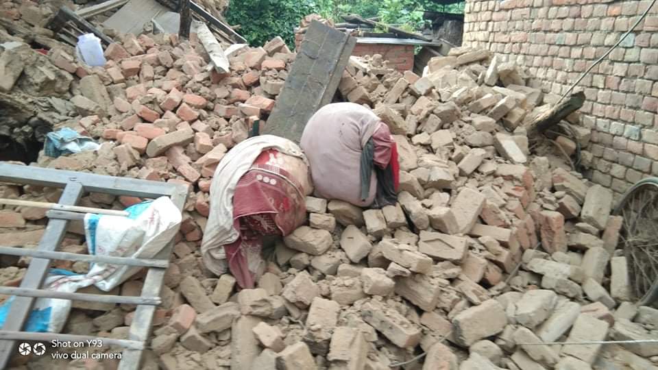 सानु चौधरी,मन कुमारी चौधरी, कृष्ण चौधरी र पर्सादु चौधरीको सगोलमा रहेको घर भत्किएकोहो। यसरी घरको गारो भत्किएको इट्टा र टीन नजिकै रहेको शिव नारायण चौधरीको भान्सामा खस्दा भान्सामा समेत क्षति भएकोछ ।