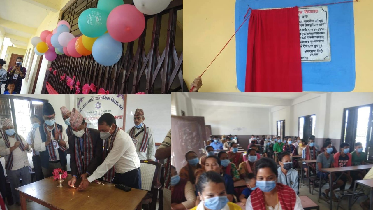 दाङ । देउखुरीको राजपुर गाउँपालिका वडा नम्बर २ बेला स्थित जनज्योति माध्यमिक विद्यालयको नव निर्मित भवनको शनिबार विधिवत रुपमा उद्घाटन भएको छ ।