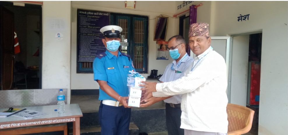 दाङ । देउखुरी उद्योग वाणिज्य संघका अध्यक्ष खगेश्वर खनाल र उपाध्यक्ष केशबराज पोख्रेलले अस्थायी ट्राफिक प्रहरी पोस्टमा पुगेर स्वास्थ्य सामाग्री प्रदान गर्नु भएको छ ।
