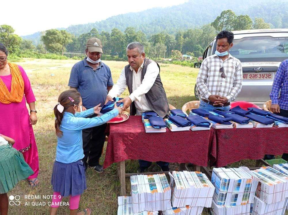 यसैबिच जनमुखि आधारभूत बिद्यालय रङसिङका विद्यालय ब्यवस्थापन समितिका अध्यक्ष सुवबहादुर कुमालको अध्यक्षता र गाउँपालिकाका अध्यक्ष सहजराम यादवको प्रमुख आतिथ्यमा बुधवार सो बिद्यालयका १०८ जना बिद्यार्थीहरुलाई ड्रेस तथा कापी वितरण गरिएको छ ।