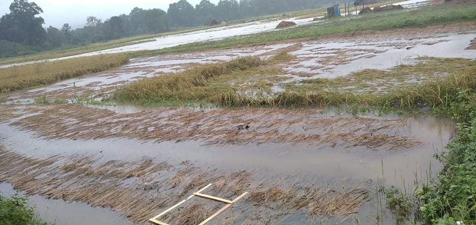 दाङ । आइतबारदेखि परेको अविरल बर्षको कारण हजारौं बिघा जमिनमा पाकेको धानबाली डुबेर नस्ट भएको छ। बर्ष ले राजपुर ४को भुर्किहवा ,कोम्रे, दुलैया, खल्सा, रोहिनिया, मोतिपुर, फोहरा, जङ्र्ह्वा चङुवा, सालभौरी, नौसरा, गङ्दी , खयरभट्टी , जहरे दमारा लगायतका क्षेत्रहरुमा रहेको खेतमा पाकेको धान डुबेर नस्ट भएको छ। दशै पुर्ब केहि दिन घाम लागेर किसानहरूले अधिकांस खेतमा काटेर लडाएका थिए भने काट्न बाकी धान कात्ने तर्खर गरिरहदा बिगत दुई दिन देखि परेको अविरल बर्षले धान डुबाएर नस्ट गरिदिएको छ। बर्ष भरी खाने धानबाली हिजो देखि परेको अविरल बर्षले नस्ट हुँदा अब कसरी गुजारा गर्ने हो भन्ने चिन्ता लागेको स्थानीय किसान गोमा भण्डारीले बताउनु भएको छ। त्यस्तै निकै दुख गरेर असारमा रोपेको धान बाली घरमा भित्र्याउने बेलामा प्राकृतिक बिपदाले नस्ट गर्दिएको स्थानीय किसान इन्द्र भण्डारीले बताउनु भयो ।