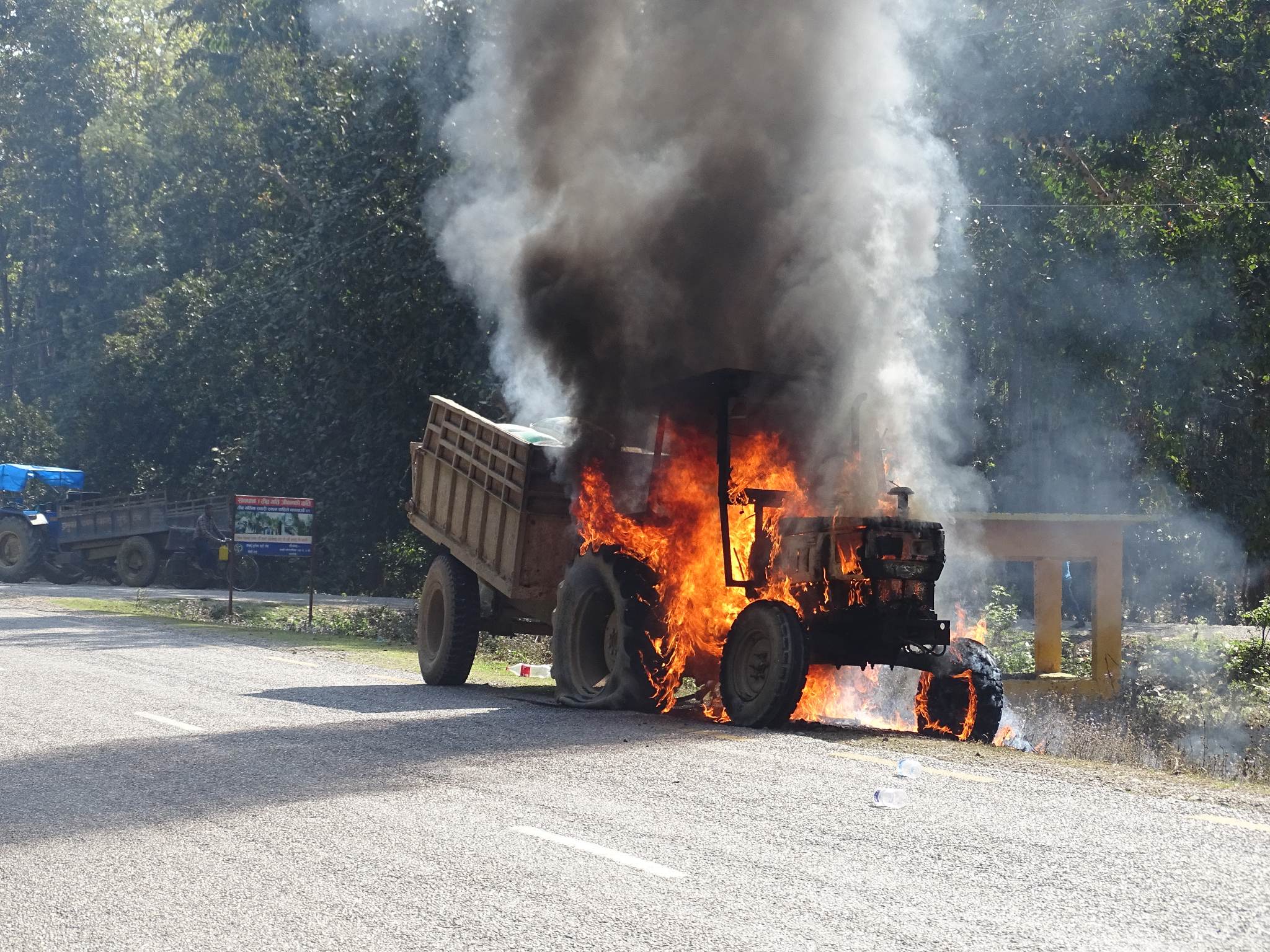 दाङ । देउखुरीमा एक्कासी ट्रयाक्टरमा आगलागी हुँदा पुर्णरुपमा जलेर क्षेती भएको छ । लमही नगरपालिका वडा नम्बर ७ हसनापुर स्थित ट्राफिक चेकिङमा रोकिराखेको ट्याक्टरमा आगलागी भएको हो । सम्राट सिमेन्ट कम्पनीबाट सिमेन्ट लोड गरी लु १ त ७६०६ नम्बरको ट्याक्टर पश्चिम तर्फ जाँदै गर्दा तार सर्ट भई आगलागी भएको प्रहरीले बताएको छ ।त्यस्तै ट्याक्टर सिमेन्ट कम्पनीको […]