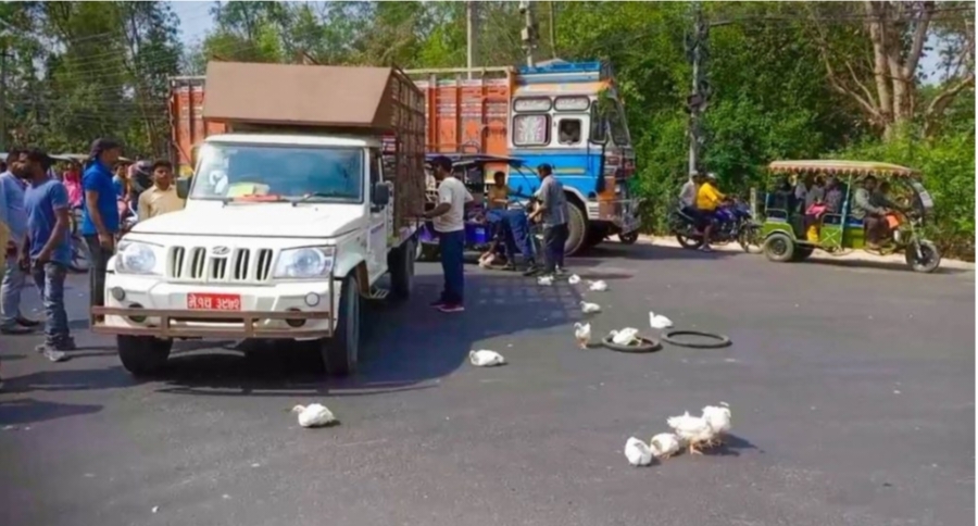 बाँके । नेपालगन्जको गणेशमान चोकमा बोइलर कुखुरा फालेर ब्यापारीहरु आन्दोलन गरेका छन् । उनिहरुको आन्दोलनका कारण केहिबेर सडक अबरुद्ध भएको थियो । भारतबाट अबैधरुपमा नेपाल कुखुरा भित्रिने भएको हुँदा नेपाली कुखुराले बजार नपाएका कारण बाध्य भएर आन्दोलन गर्नु परेको पोल्टी व्यवसायी मोहम्मद हुसेन खाँले बताए । उनका अनुसार आफ्नो समस्याबारे जिल्ला प्रशासन र जिल्ला प्रहरी […]