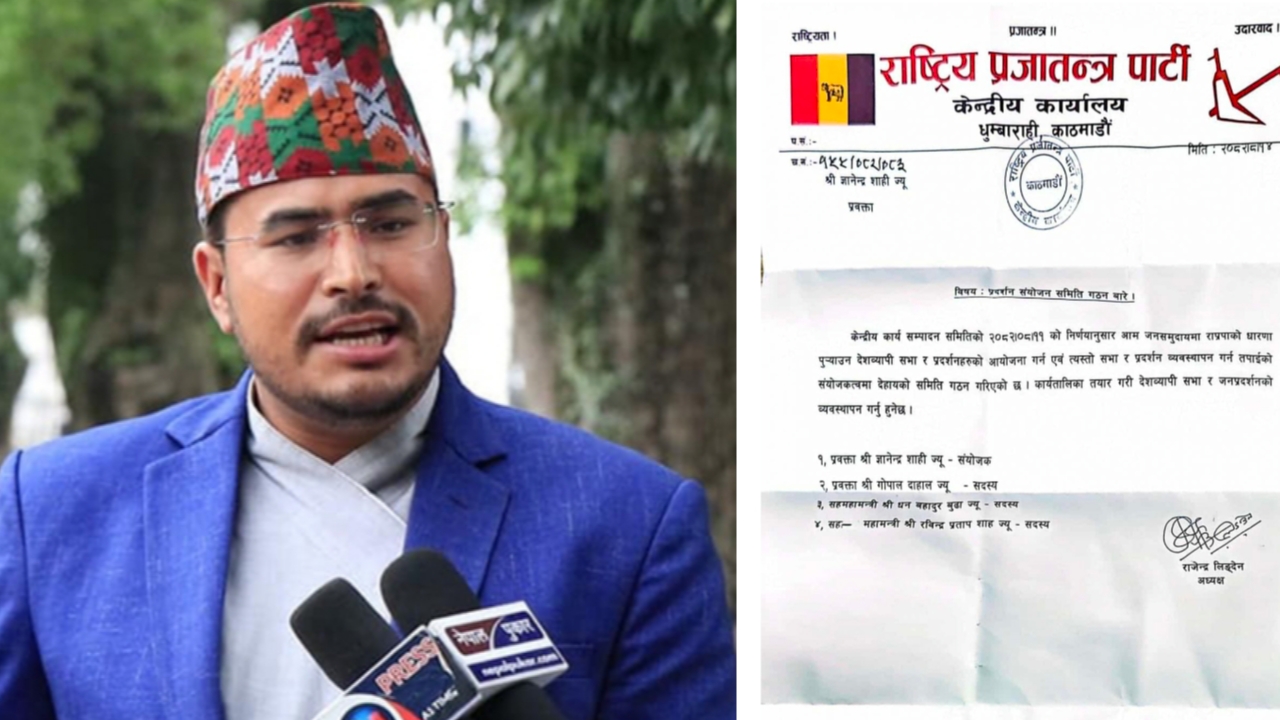 काठमाडौँ । राष्ट्रिय प्रजातन्त्र पार्टी (राप्रपा)ले आन्दोलन परिचालन समितिको संयोजकमा पार्टी प्रवक्ता ज्ञानेन्द्र शाहीलाई तोकेको छ । साथै आन्दोलन परिचाल समितिको सदस्यमा अर्का प्रवक्ता गोपाल दाहाल,सहमहामन्त्री धनबहादुर बुढा, रविन्द्र प्रताव शाह तोकिएका छन् । त्यस्तै उनीहरुलाई राप्रपाको धारणा जनसमुदायमा पुर्याउन गरिने सभा तथा प्रदर्शनको व्यवस्थापना गर्ने जिम्मेवारी दिइएको छ । साथै समितिलाई सभा तथा प्रदर्शन […]