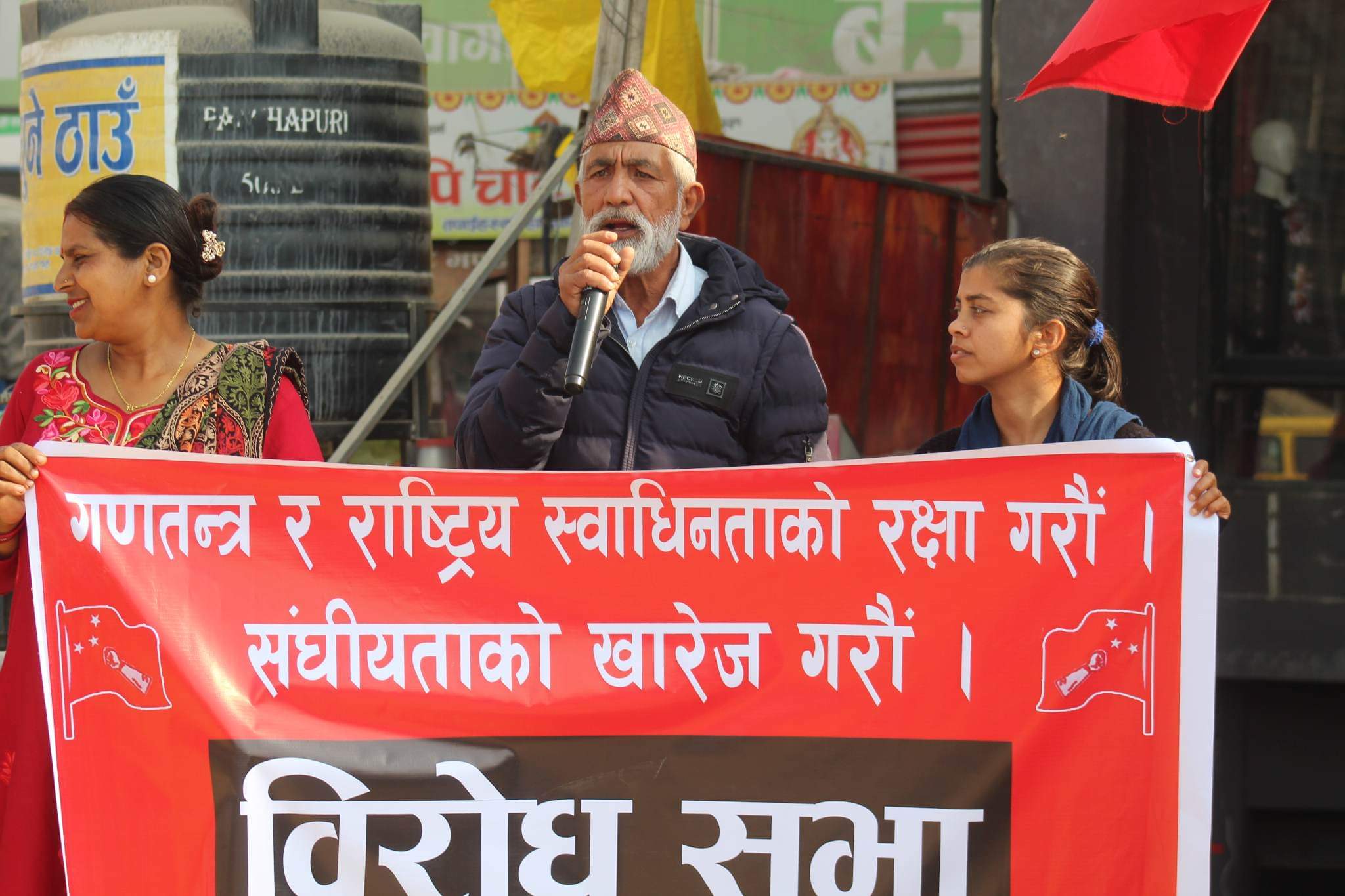 दाङ । राष्ट्रिय जनमोर्चा घोराही उपमहानगर कमिटीले गणतन्त्र, धर्म निरपेक्षता र राष्ट्रिय स्वाधिनताको रक्षा गरौ, संघियता खारेज गरौ भन्दै आज घोराहीको तुलसीपुर चोकमा विरोध सभा सम्पन्न गरेकाे छ। विरोध सभाका प्रमुख अतिथि नेकपा (मसाल) दाङका प्रवक्ता भरत भण्डारीले सम्वोधन गर्नु हुँदै यो देश र नेपाली जनताको लागि संघीयता विष वृक्ष हो । संघीयता खारेज नहुन्जेल […]