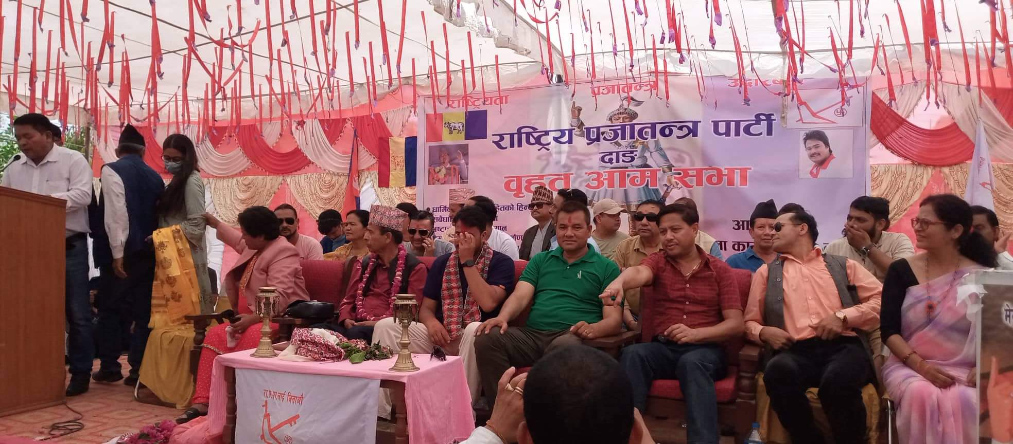 दाङ । राष्ट्रिय प्रजातन्त्र पार्टी राप्रपाले स्थानीय तह निर्वाचनको चुनावी सभा घोराहीमा सम्पन्न गरेको छ । राप्रपा दाङका अध्यक्ष क्षेत्र बहादुर बस्नेतको सभाध्यक्षता तथा पार्टीको प्रवक्ता ज्ञानेन्द्र शाहीको प्रमुख आतिथ्यतामा आज घोराहीमा आम सभा गरेको हो । सभालाई सम्बोधन गर्दै पार्टी प्रवक्ता शाहीले धार्मिक स्वतन्त्रता सहितको हिन्दु राष्ट्र, संवैधानिक राज संस्था स्थापना, भ्रष्टाचार विरुद्ध अभियान, […]
