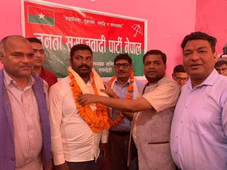 कपिलवस्तु । लुम्बिनी प्रदेशको रूपन्देही जिल्लामा जसपा नेपाल जिल्ला समन्वय समिति रूपन्देहीको पदाधिकारी बैठक विभिन्न निर्णयहरू गर्दै आज सम्पन्न भएको छ। त्यस्तै आजै डा. सिके राउतको नेतृत्वको जनमत पार्टीका संस्थापक एवं केन्द्रीय उद्दार तथा राहत विभागका प्रमुख दिलिप कुमार यादव जसपा प्रवेश गरेका छन् । उहाँ लाई लुम्बिनी प्रदेश अध्यक्ष अशोक यादवले माला लगाई स्वागत […]