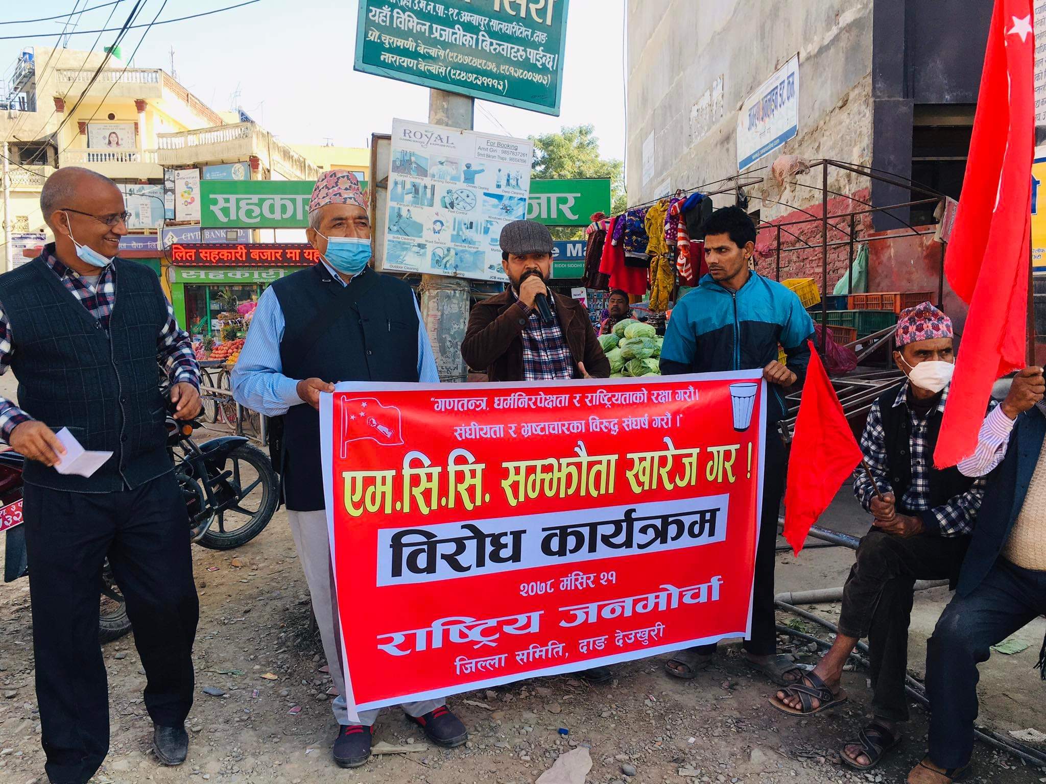 दाङ । राष्ट्रिय जनमोर्चा केन्द्रीय पुर्व सल्लाहकार शुरेस थापाले गणतन्त्र र राष्ट्रियता संकटमा भएको र एमसीसी खारेज हुनुपर्ने बताउनु भएको छ। राजमो दाङ जिल्लाले मंगलबार घोराहीमा गरेको विरोध सभालाई सम्बोधन गर्दै प्रमुख अतिथि थापाले एमसीसीलाई खारेज गर्नु पर्छ भन्नु भयो । नेपाललाई अमेरिकाको सैनिक अखडाको रुपमा अमेरिकालाई हाम्रो नेपालको भुमि तयार भयोभने हामी चीनको विरुद्द […]