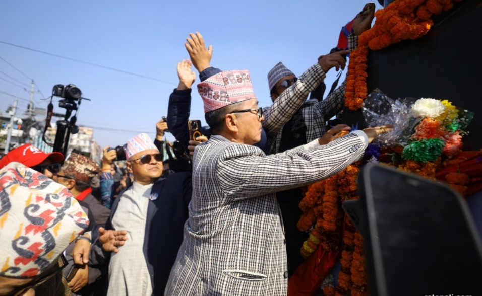 काठमाडौँ । राष्ट्रिय प्रजातान्त्र पार्टी (राप्रपा) अध्यक्ष राजेन्द्र लिङ्देन लगायतका नेता कार्यकर्ताले पृथ्वी नारायण शाहको सालिकमा माल्यार्पण गरेका छन् । ३०३ औँ पृथ्वी जयन्ती तथा राष्ट्रिय एकता दिवस अवसरमा सिंहदरबारको मूलगेट अगाडि रहेको पृथ्वीनारायण शाहको सालिकमा माल्यार्पण गरिएको हो । प्रमुख प्रशासनिक भवन सिंहदरबारको पश्चिम मूलगेटमास्थित पृथ्वीनारायण शाहको सालिक आज विभिन्न व्याक्तिहरुले माल्यार्पण गरिरहेका छन् […]
