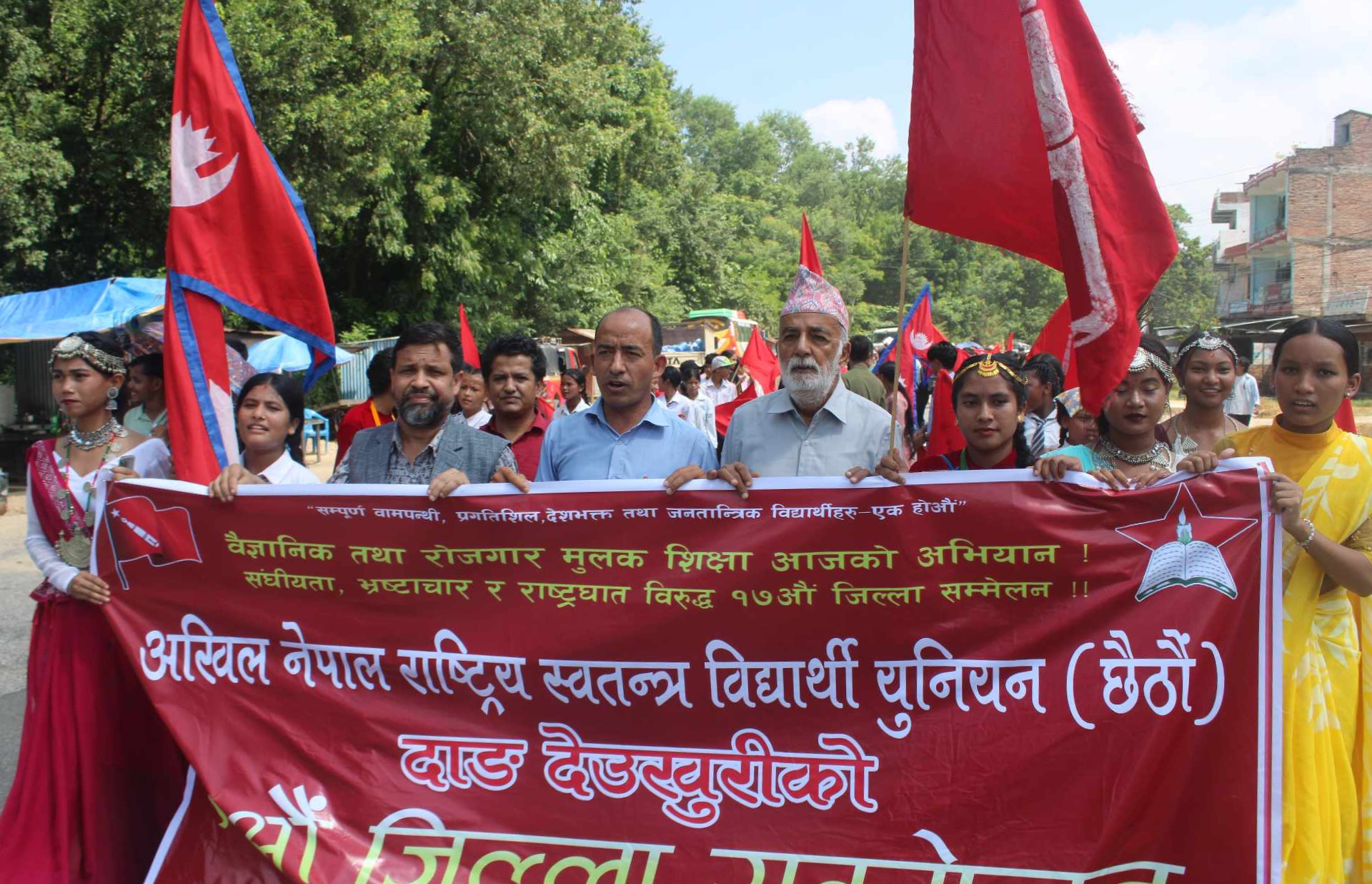 दाङ । अखिल नेपाल राष्ट्रिय स्वतन्त्र विद्यार्थी युनियन (छैठौं) को १७ औं जिल्ला सम्मेलन असोज ३ गते दाङको भालुवाङमा सम्पन्न भएको छ। सम्मेलनले सेवक भट्टराईको अध्यक्षतामा २५ सदस्यीय जिल्ला समिति र ६ सदस्यीय सल्लाहकार चयन गरेको छ । समितिको उपाध्यक्ष निर्मला खनाल सचिवमा दिनेश रैदास,सहसचिव तुलसीराम भट्टराई , कोषाध्यक्ष तुलसीराम भण्डारी चयन भएका छन् । […]