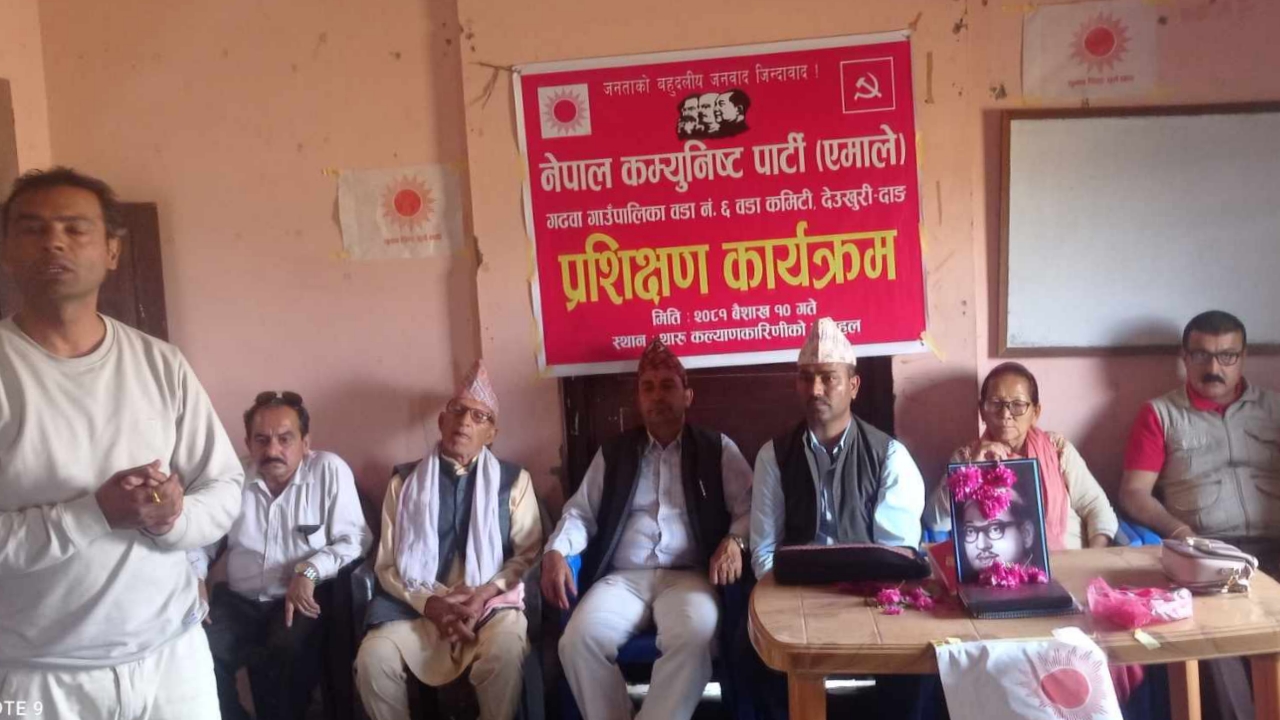 दाङ । नेकपा एमाले गढवा-६ को आयोजनामा सोमवार पार्टी केन्द्रले तय गरेको बैचारिक कार्यक्रम अन्तरगत नेकपाको स्थापना दिवस संगै कार्यकर्ता प्रशिक्षण कार्यक्रम सोमबार सम्पन्न गरेको छ । पार्टीका वडा अध्यक्ष दामोदर ढुङानाको अध्यक्षता र एमाले लुम्बिनी प्रदेस कमिटीका सदस्य सुरामणी बेल्वासेको प्रमुख आतिथ्यमा भएको कार्यक्रममा जनताको बहुदलीय जनवाद र नेपालको वर्तमान समसामयिक राजनितीका बारेमा बेल्वासेले […]