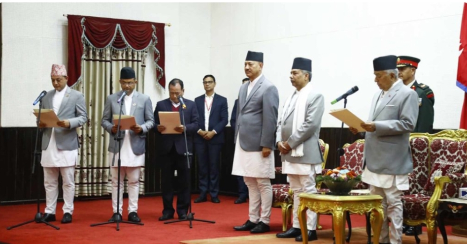 काठमाडौं । गठबन्धनका तीन जना मन्त्रीले पद तथा गोपनीयताको शपथ लिएका छन् । सोमबार आज साँझ राष्ट्रपति रामचन्द्र पौडेलले नेकपा एमालेका पदम गिरी,नेकपा माओवादी केन्द्रका हितबहादुर तामाङ र राष्ट्रिय स्वतन्त्र पार्टीका डीपी अर्याललाई शपथ गराउनु भएको हो । नेकपा एमाले,नेकपा माओवादी केन्द्र,राष्ट्रिय स्वतन्त्र पार्टी र जनता समाजवादी पार्टीबीच नयाँ सत्ता समीकरण बनाउने सहमति भएको थियो […]