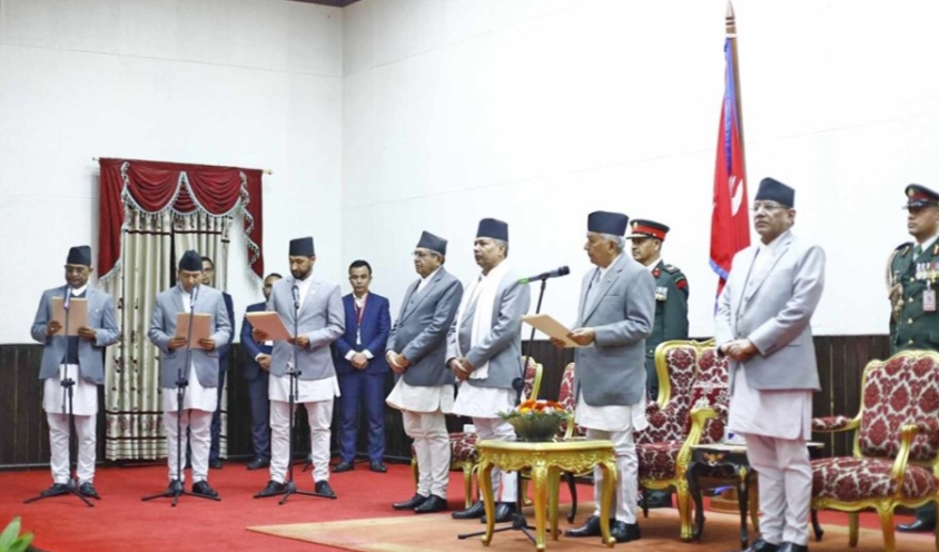 काठमाडौं । नवनियुक्त भएका मन्त्रीहरुले पद तथा गोपनीयताको शपथ लिएका छन् । प्रधानमन्त्री पुष्पकमल दाहाल प्रचण्डले बुधबार नेकपा एमाले,नेकपा माओवादी केन्द्र र राष्ट्रिय स्वतन्त्र पार्टीका नेताहरु समेटेर मन्त्रिपरिषद् विस्तार गरेका थिए । नवनियुक्त मन्त्रीहरुले राष्ट्रपति भवन शीतलनिवासमा आयोजित समारोहमा राष्ट्रपति रामचन्द्र पौडेलसँग शपथ लिएका हुन् । त्यस्तै प्रधानमन्त्रीको सचिवालयका अनुसार एमालेका ८ जना, माओवादी केन्द्रका […]