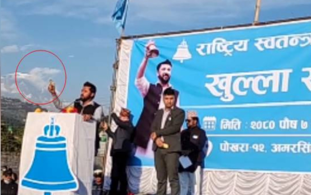 पोखरा । पोखरामा आज राष्ट्रिय स्वतन्त्र पार्टी (रास्वपा) का सभापति रवि लामिछानेमाथि खोया प्रहार भएको छ । पोखरा स्थित अमरसिंह चौरमा चलिरहेको सभालाई सम्बोधन गरिरहेका लामिछानेमाथि सभामा सहभागी एक युवकले मकैको खोया प्रहार गरेका हुन् । उक्त खोया प्रहार गर्ने लमजुङका २८ वर्षीय सन्तोष रानाभाटलाई प्रहरीले नियन्त्रणमा लिएको छ । त्यस्तै जिल्ला प्रहरी कार्यालय कास्कीका […]