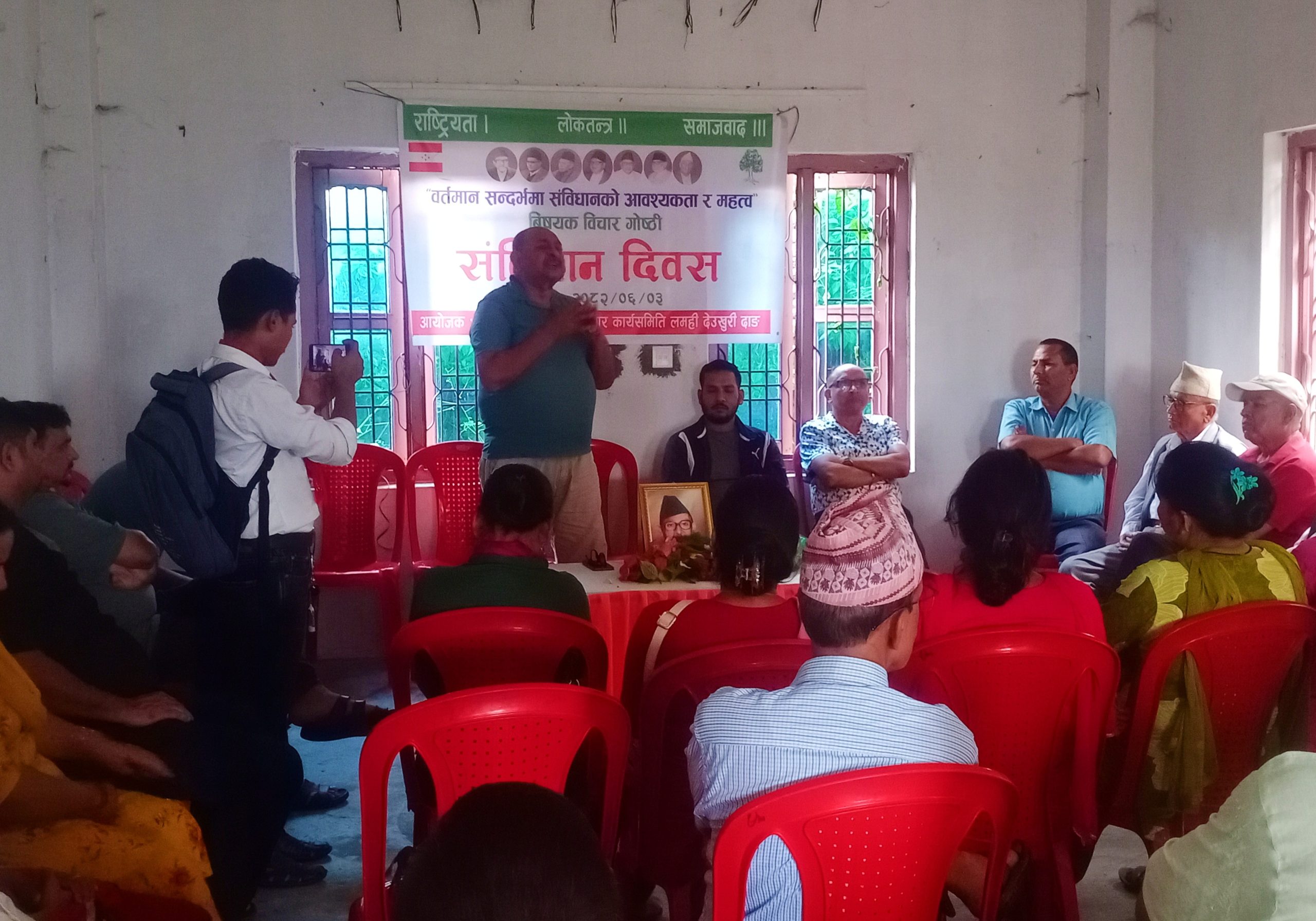 दाङ । देशले नयाँ संविधान हासिल गरेको ऐतिहासिक दिनलाई स्मरण गर्दै शुक्रबार दाङको लमहीमा नेकपा (एमाले) नगर कमिटीले विशेष कार्यक्रम सम्पन्न गरेको छ । नेपालको संविधान जारी भएको ११ वर्ष पूरा भएको अवसरमा आयोजित कार्यक्रममा संविधान दिवसलाई राष्ट्रिय गौरवको रूपमा मनाइएकाे थियो । नेकपा (एमाले) लमही नगर कमिटीका अध्यक्ष रतन कुमार के.सीको अध्यक्षता एबम् नेकपा […]