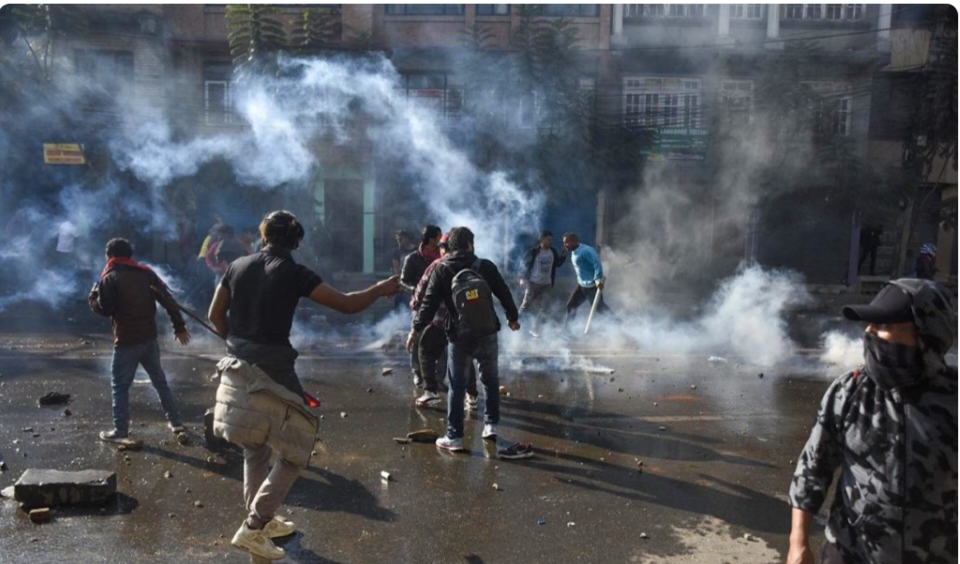 काठमाडौं । काठमाडौं स्थित बल्खुमा प्रदर्शनरत दुर्गा प्रसाईंको समूह र प्रहरीबीच झडप भएको छ । बल्खु चक्रपथमा प्रदर्शन गरिरहेकाहरु प्रहरी घेरा तोडेर कालीमाटीतर्फ जान खोजेपछि प्रहरीले बल प्रयोग गरेर अश्रुग्यास र पानीको फोहोरा हानेको छ । प्रहरी बल प्रयोग गरेपछि प्रदर्शनकारीले प्रहरीतर्फ इँट्टा र ढुंगा हानेका छन् । त्यस्तै प्रदर्शनस्थलमा दुर्गा प्रसाईंले सम्बोधन गरेपछि एक […]