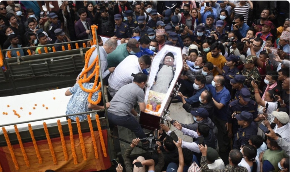 काठमाडौं । सोमबार राति निधन भएका संविधानसभा अध्यक्ष सुवास नेम्वाङको आज राजकीय सम्मानसहित अन्त्येष्टि गरिंदैछ । नेम्वाङको सोमबार राति निधन भएको थियो । दुई दिनसम्म पार्टी कार्यालय, च्यासलमा राखिएको उनको पार्थिव शरीरलाई बुधबार बालुवाटारस्थित निवासमा लगिएको छ । एमालेको केन्द्रीय प्रचार एवं प्रकाशन विभागका सचिव गगन विष्टका अनुसार आज ११ बजे पशुपति आर्यघाटमा नेम्वाङको अन्त्येष्टि […]