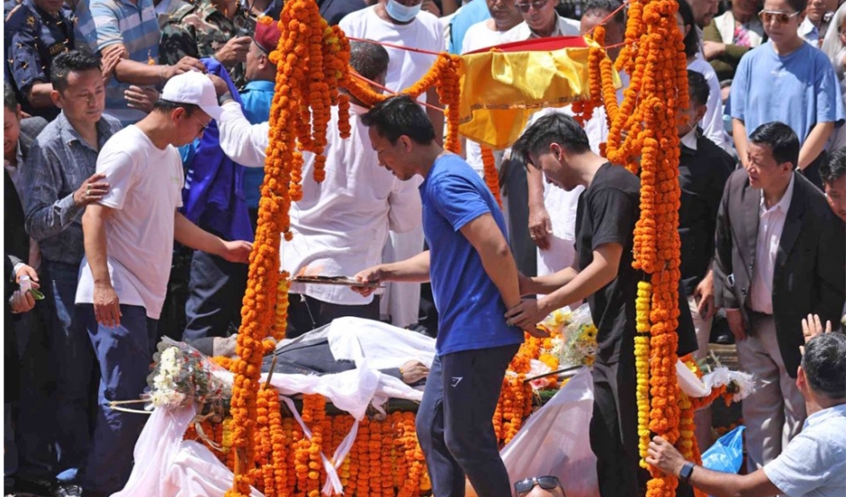 काठमाडौं । संविधानसभा अध्यक्ष एवम् नेकपा एमालेका उपाध्यक्ष सुवास नेम्वाङको राजकीय सम्मानका साथ अन्त्येष्टि गरिएको छ । उनलाई पशुपति आर्यघाटमा छोराहरु मिङसो र सुहाङ नेम्वाङले दागबत्ती दिएका छन् । लगत्तै नेपाली सेनाको टोलीले शोक धुन बजाएको थियो । त्यसअघि नेम्वाङको पार्थिव शरीरमा प्रधानमन्त्री पुष्पकमल दाहाल प्रचण्डले राष्ट्रिय झण्डा ओढाएर र नेकपा एमालेका अध्यक्ष केपी शर्मा […]