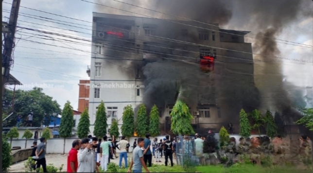 हेटाैंडा । बागमती प्रदेशकाे राजधानी हेटाैंडामा जेन-जीहरुकाे प्रदर्शनले उग्ररुप लिएको छ। जिल्ला प्रशासन कार्यालय मकवानपुरले अपरान्हदेखि आज राति १२ बजेसम्म कर्फ्यु जारी गरेपनि प्रदर्शनकारीहरू राेकिएका छैनन् । प्रदर्शनकारीले बागमती प्रदेशका मन्त्रालय, बागमती प्रदेशसभा सचिवालय भवन,जिल्लास्थित पार्टी कार्यालयदेखि नेताहरुकाे घरमा आगो लगाएका छन् । निरन्तर आगजनी भइरहँदा पनि सुरक्षा निकायहरू रक्षात्मक देखिएका छन् । मुख्यमन्त्री इन्द्रबहादुर […]